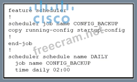 Refer to the exhibit. The network administrator must use a scheduler to perform configuration backups every night. After completing the configuration, the administrator discovers that configuration backups occur at 05:15 in the morning instead of at 02:00. Which action resolves the issue?