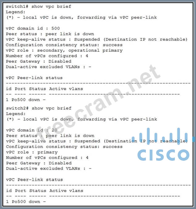 Question 110: Refer to the exhibit. An engineer discovers that if the vPC ...