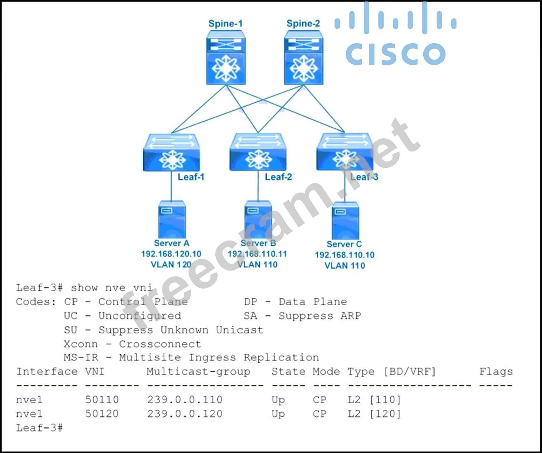 Question 47: Refer to the exhibit. A Cisco VXLAN must use bidirectional P...