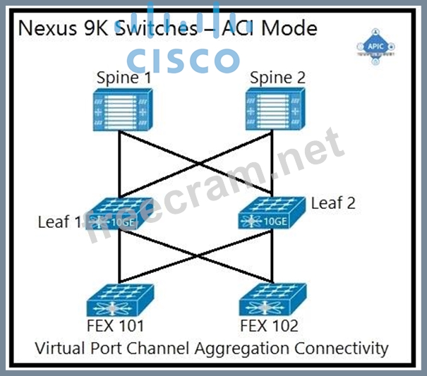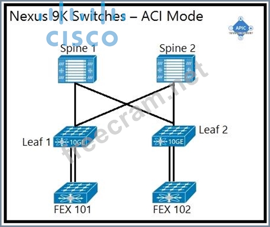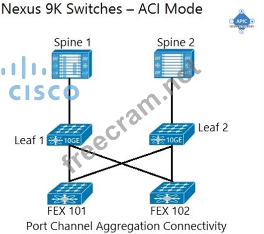 An engineer is implementing a Cisco ACI data center network that includes Cisco Nexus 2000 Series 10G fabric extenders. Which physical topology is supported?