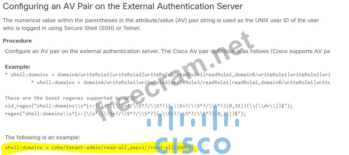 The customer requires User X to have access to TenantX only, without any extra privilege in the Cisco ACI fabric domain. Which Cisco AV pair must be implemented on the RADIUS server to meet these requirement?
