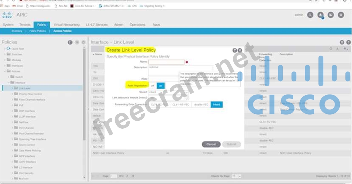 * Allow the newly connected device to auto-negotiate link speed with the leaf switch Which two ACI policies must be configured to achieve these requirements? (Choose two.)