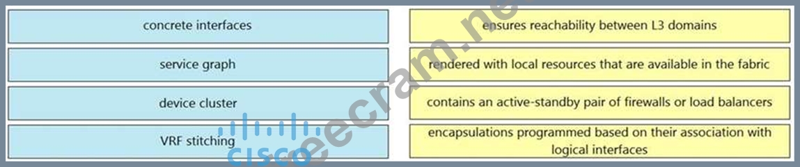 Drag and drop the Cisco ACI Layer 4 to Layer 7 service insertion terms on the left to the correct descriptions on the right.