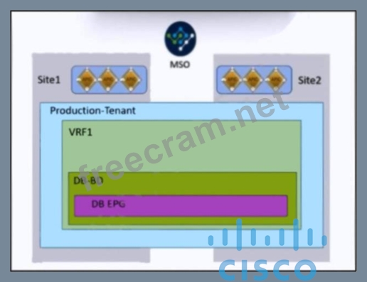 Refer to the exhibit. An engineer must allow IP mobility between Site1 and Site2 in a Cisco ACI Multi-Site orchestrator. The design must meet these requirements: