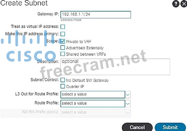 Question 114: When creating a subnet within a bridge domain, which configu...