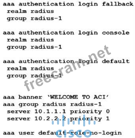 Question 131: A Cisco APIC is configured with RADIUS authentication as the...