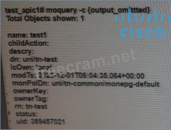 Question 125: Which class of ACI object is presented in this output? (Exhi...