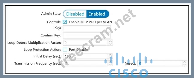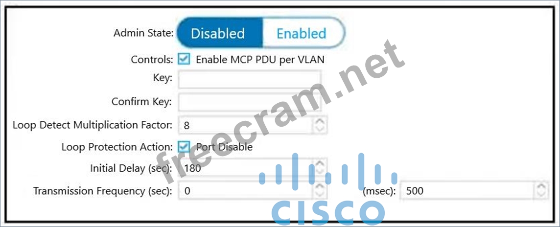A network engineer must configure a Cisco ACI system to detect network loops for untagged and tagged traffic. The loop must be detected and slopped by disabling an interface within 4 seconds.
