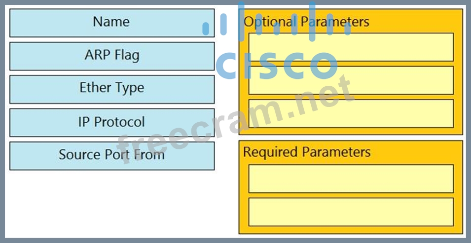 Drag and drop the Cisco ACI filter entry options from the left onto the correct categories on the right indicating what are required or optional parameters.