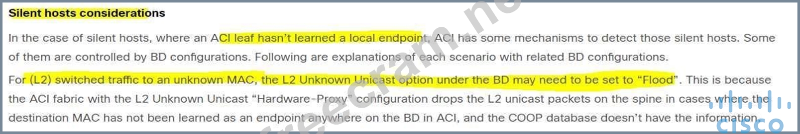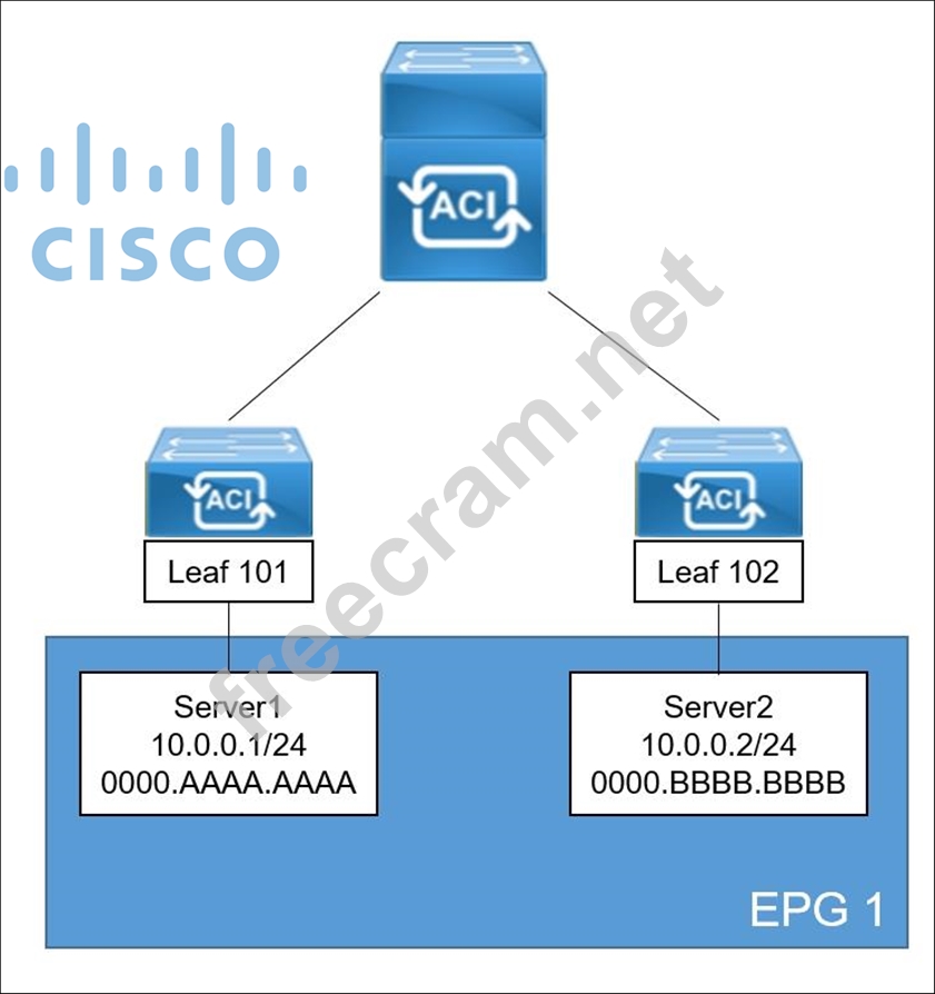 Both servers are in the same subnet. ARP flooding is out if we read the article in the link. Also unicast routing is not needed. https://www.cisco.com/c/en/us/solutions/collateral/data-center-virtualization/application-centric- infrastructure/white-paper-c11-739989.html