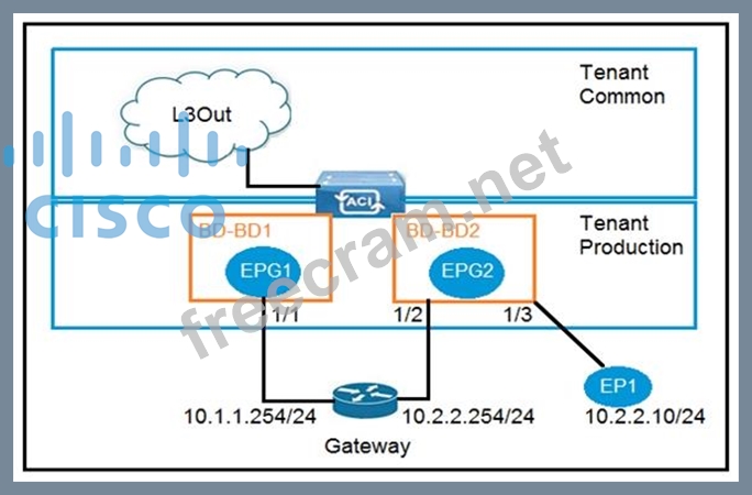 Refer to the exhibit. An engineer wants to avoid connectivity problems for the endpoint EP1 when it reaches an external L3Out network through the gateway 10.2.2.254/24. Which two configurations must be implemented in BD-BD2? (Choose two.)