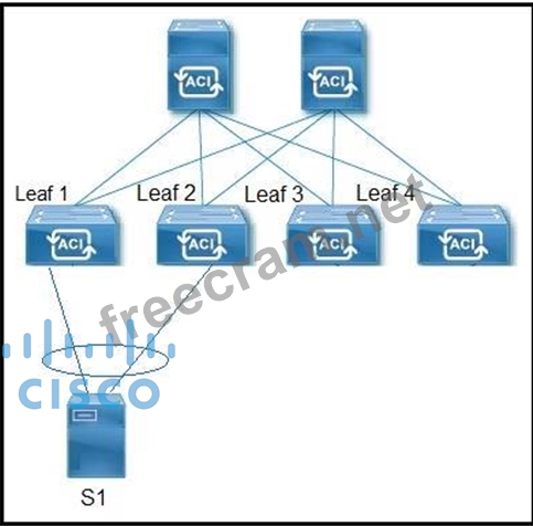 Question 55: The servers are dual-homed to Cisco ACI Leaf1001 and Leaf100...