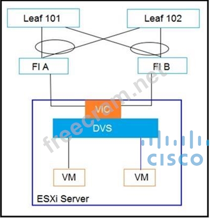 Question 41: Refer to the exhibit. Between Cisco UCS Fls and Cisco ACI le...