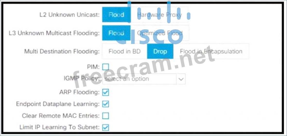 Refer to the exhibit. Which method does Cisco ACI fabric use to forward L2 Unknown Unicast packets?