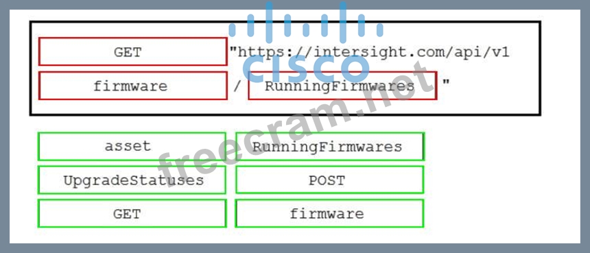 Drag and drop the items to complete the request to retrieve the current firmware of Cisco UCS devices from the Cisco Intersight API. Not all items are used.