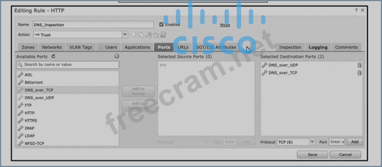 Question 63: An engainer must add DNS-specific rules to me Cisco FTD intr...