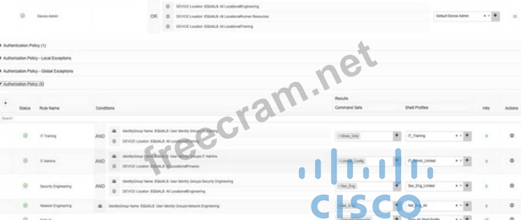 An organization recently implemented network device administration using Cisco ISE. Upon testing the ability to access all of the required devices, a user in the Cisco ISE group IT Admins is attempting to login to a device in their organization's finance department but is unable to. What is the problem?