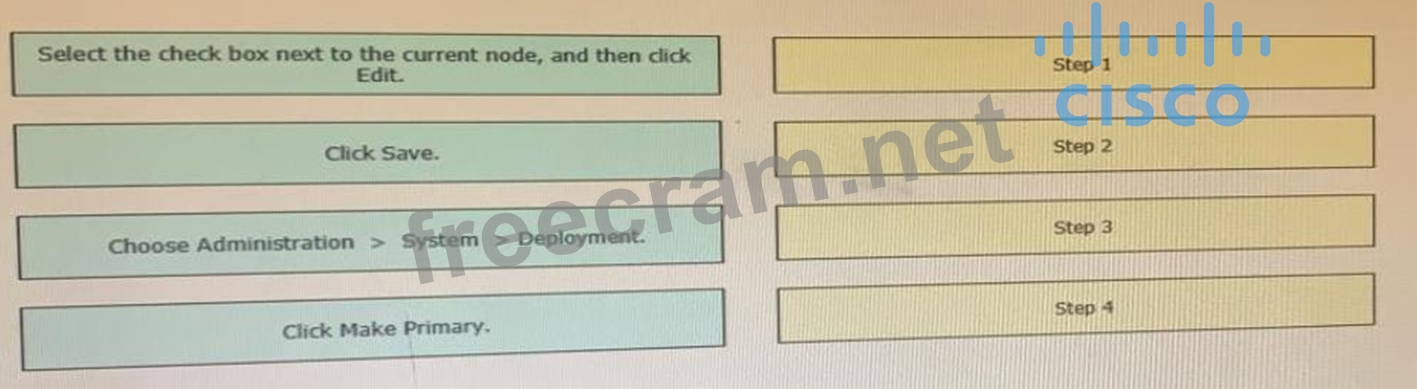 Question 28: Drag the steps to configure a Cisco ISE node as a primary ad...