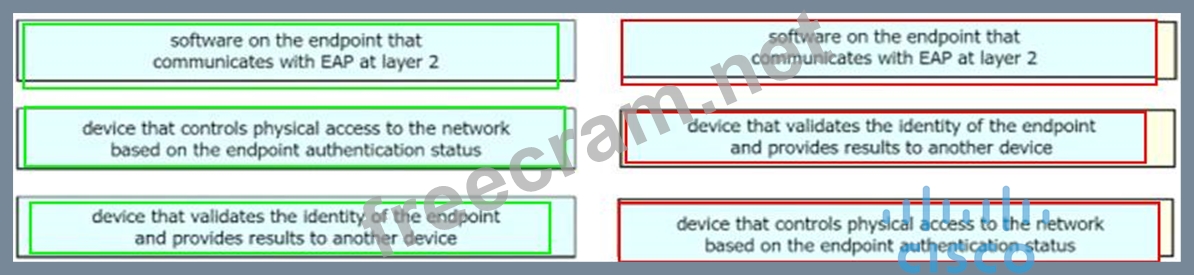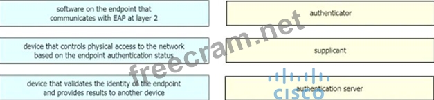 Drag the descriptions on the left onto the components of 802.1X on the right.