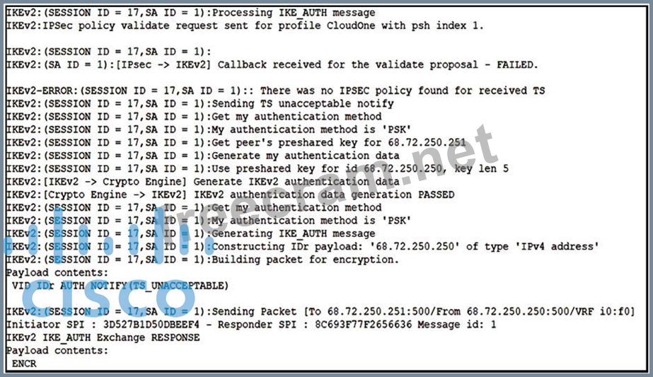 Question 44: Refer to the exhibit. What is the problem with the IKEv2 sit...