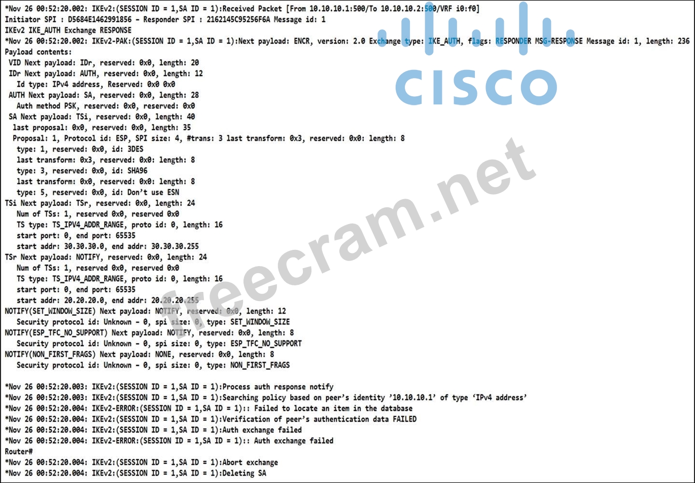Question 44: Refer to the exhibit. What is the problem with the IKEv2 sit...