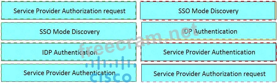 Drag and drop the events for an on-premises Jabber SAML SSO flow from the left into the correct order on the right.