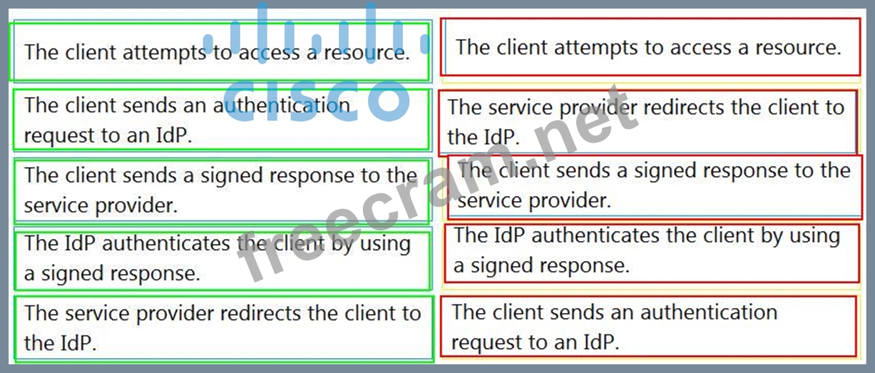 Drag and drop the steps for SAML SSO authentication from the left into the order on the right.