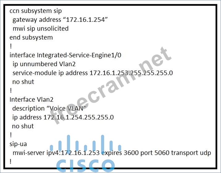 A collaboration engineer has integrated Cisco Unity Express with Cisco Unified Communications Manager Express and is experimenting with the MWI feature. With the current configuration, no MWI change occurs when leaving new messages or after playing new messages. Which two changes are needed to correct the configuration? (Choose two.)