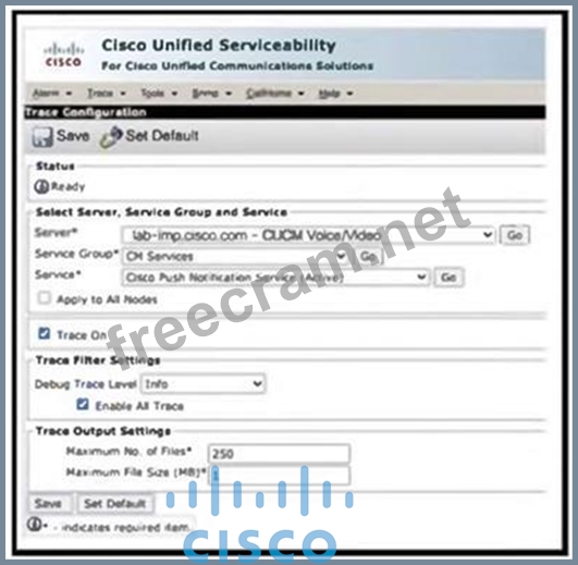Refer to the exhibit. An administrator troubleshoots push notifications, and Cisco TAC requests the trace files from the cluster.
