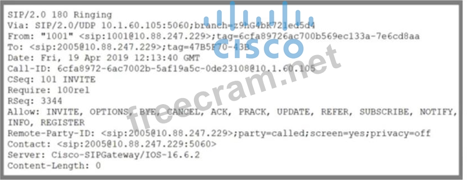 Question 39: Refer to the exhibit. (Exhibit) Which INVITE is sent to 10.1...