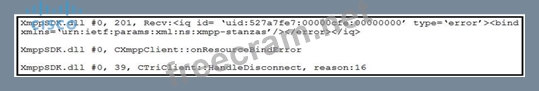 Question 52: Refer to the exhibit. While troubleshooting Cisco Jabber log...