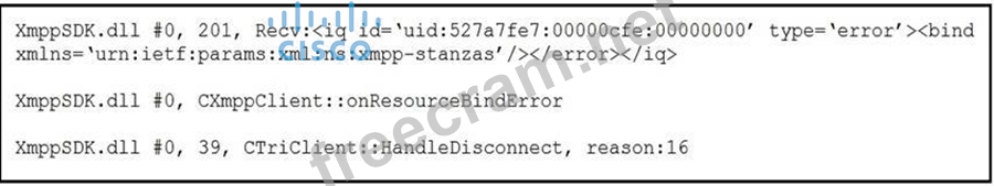 Refer to the exhibit. While troubleshooting Cisco Jabber login issues, there are some error messages.