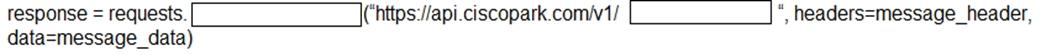Fill in the blanks to complete the line of Python code that sends a message to a Webex Teams room or person.