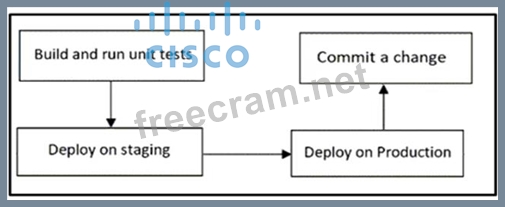 Refer to the exhibit. An organization has issues with code-based failures after implementing a CI/CD pipeline to automate the builds and deployment phases of an application. Which action must be added to the pipeline, after the application is deployed in the staging environment to minimize failures and to ensure a successful continuous deployment?