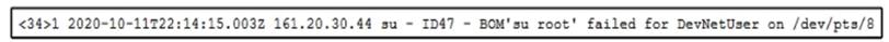 The text represents a syslog message sent from a Linux server to a centralized log system.