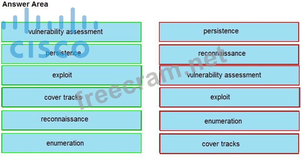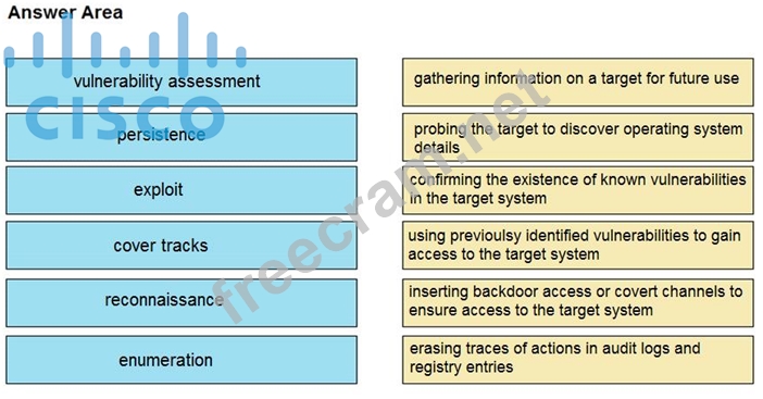 Drag and drop the phases to evaluate the security posture of an asset from the left onto the activity that happens during the phases on the right.