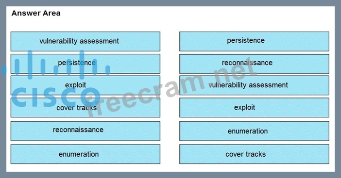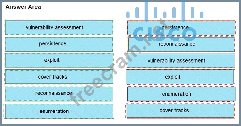 Question 22: Drag and drop the phases to evaluate the security posture of...