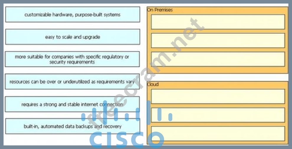 Drag and drop the characteristics from the left onto the appropriate infrastructure deployment types on the right.