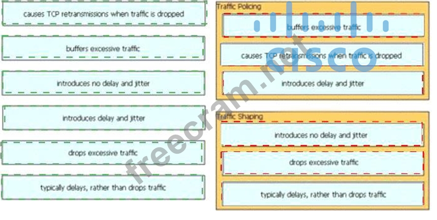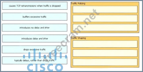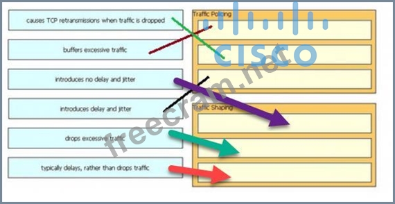 Question 34: Drag and drop the descriptions from the left onto the QoS co...