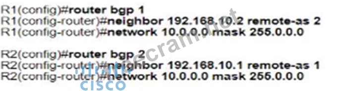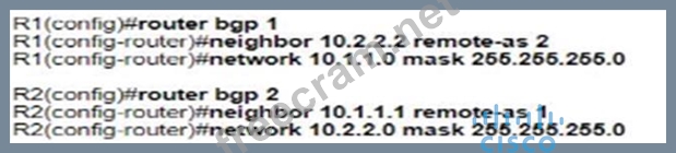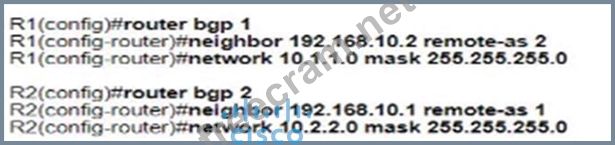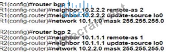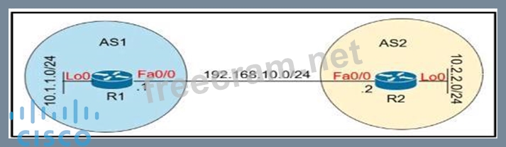 Refer to the exhibit. Which configuration establishes EBGP neighborship between these two directly connected neighbors and exchanges the loopback network of the two routers through BGP? A) B) C) D)