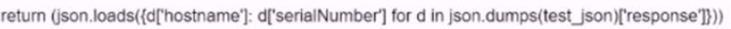 Which line must be added in the Python function to return the JSON object {"cat_9k": "FXS193202SE")?