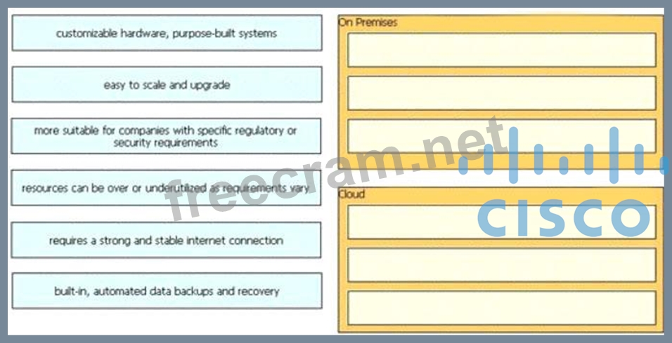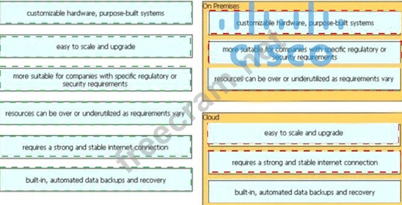Drag and drop the characteristics from the left onto the appropriate infrastructure deployment types on the right.