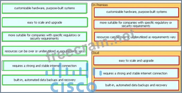 Drag and drop the characteristics from the left onto the appropriate infrastructure deployment types on the right.