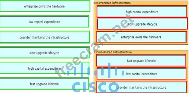 Drag and drop the characteristics from the left onto the infrastructure types on the right.