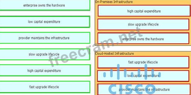 Drag and drop the characteristics from the left onto the infrastructure types on the right.