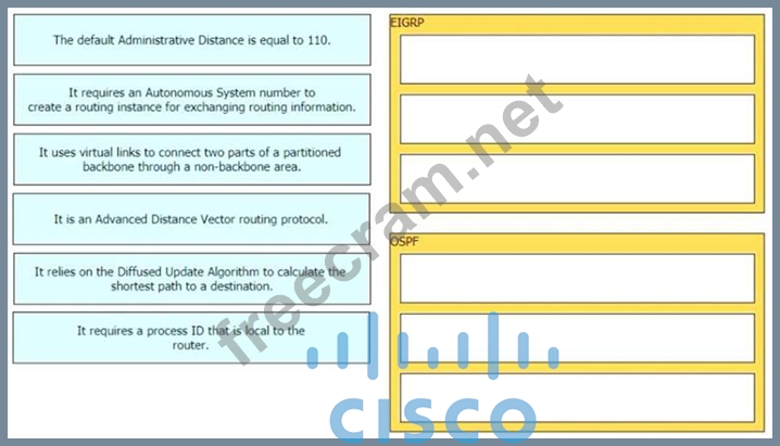 Drag and drop the characteristics from the left onto the routing protocols they describe on the right.
