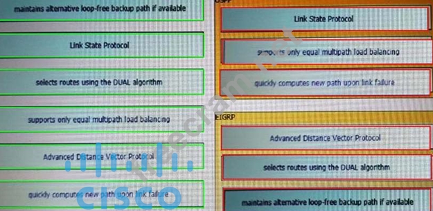 Drag and drop the characteristics from the left onto the routing protocols they describe on the right.