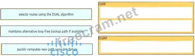 Drag and drop the characteristics from the left onto the routing protocols they describes on the right.