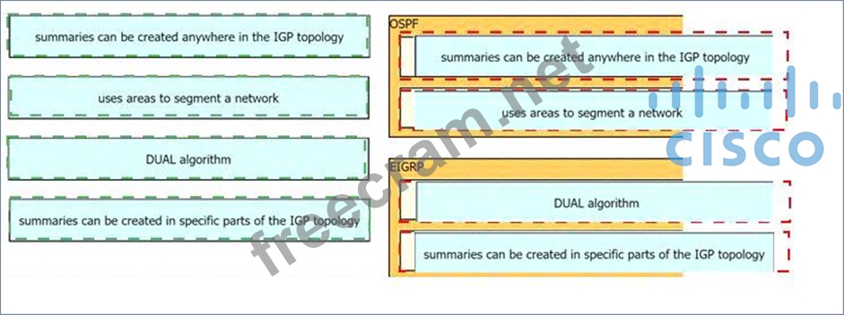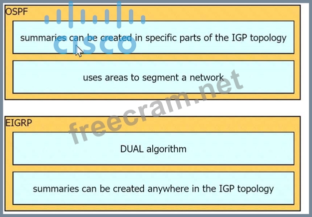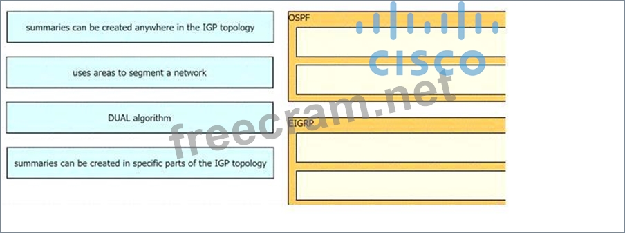 Drag and Drop the decryptions from the left onto the routing protocol they describe on the right.
