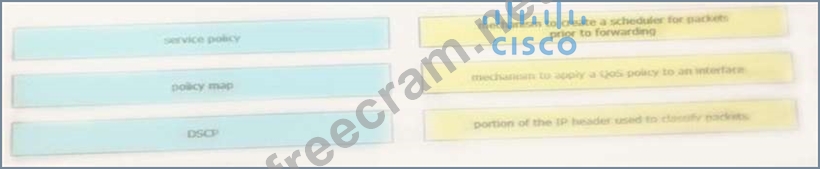 Question 65: Drag and drop the descriptions from the left onto the QoS co...